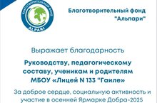 Благотворительный фонд «Альпари» выражает благодарность руководству, педагогическому составу, ученикам и родителям нашего лицея.