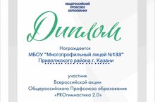 **Мы рады сообщить, что **МБОУ Лицей № 133** получил **диплом** за участие во **Всероссийской акции «PROгимнастика 2.0»**, организованной **Общероссийским профсоюзом образования**!