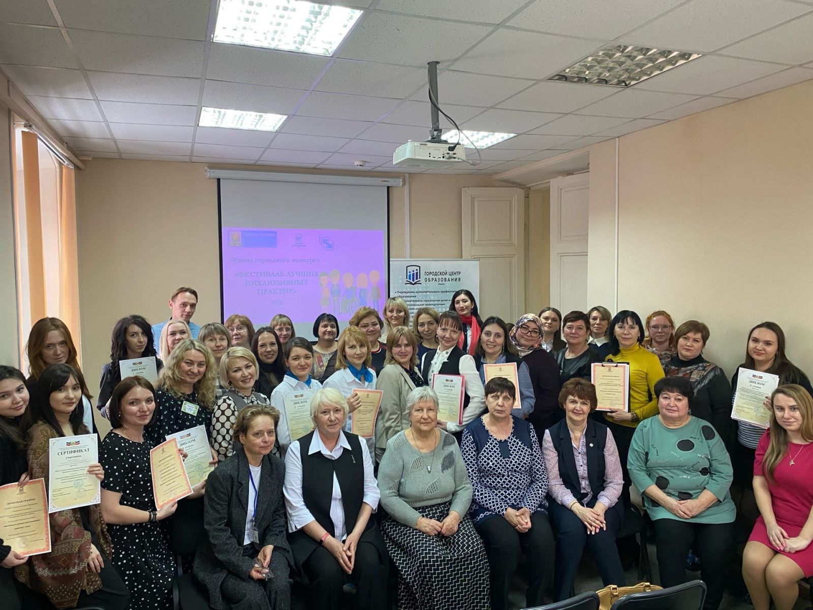 29 марта 2022 года на базе ЧУ ДПО «Городской центр образования» прошел финал городского конкурса «Фестиваль лучших инклюзивных практик». По итогам конкурса, в номинации «Лучшая инклюзивная практика в ДОУ» 2 место заняли МБДОУ «Детский сад № 357 комбинированного вида» Приволжского района (авторы - Валеева Ю.Н., Валиева А.И., Валиуллина Г. И., Новикова Р.Р.,) и МБДОУ «Детский сад № 63 комбинированного вида» Вахитовского района (авторы Баймурзина Р.И., Ведерникова Л.Р., Безделова М.Ю.). В номинации «Лучшая инклюзивная практика в школе» 1 место заняла МБОУ «Русско-татарская средняя общеобразовательная школа № 97» Приволжского района (авторы Березина Л.Г., Емельянова М.Н., Калинин В.С.,) 2 место заняла МБОУ «Русско-татарская средняя образовательная школа №136» Приволжского района (автор Антонова Ю.А.). В номинации «Лучшая инклюзивная практика в дополнительном образовании» 3 место заняла МБУДО «Центр детского творчества» Вахитовского района (авторы Бердникова М.Г., Шашина Т.Б., Шигаповоа Г.Р.). Поздравляем с победителей и призеров конкурса и желаем успехов!