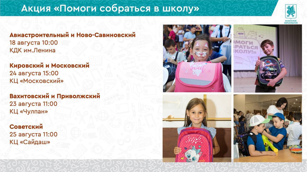 Опубликовано: 01.08.20231 августа в Казани стартует благотворительная акция «Помоги собраться в школу».