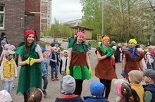 Именно по пятницам в детском саду проходят клубные часы. В эту пятницу, 12 мая, клубный час был посвящен Дню Победы, прошел он на улице и участие в нем приняли все группы.