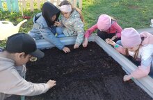 Начался огородный сезон и в нашем детском саду. В апреле силами родителей и педагогов обновлены грядки. Воспитатели с детьми уже посадили лук, зелень, редис, клубнику, томаты. Сегодня ребята подготовительной группы №5 посадили свеклу, ребята средней группы №4 -репу, а ребята младшей группы №1- морковь. На очереди теплолюбивые культуры.