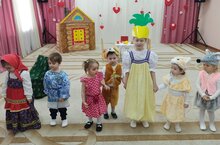 Заранее были распределены сказки: самым маленьким нашим воспитанникам было предложено инсценировать русские народные сказки (выбор пал на сказки "Теремок" и "Репка"), средним группам -татарские, а подготовительным - любую сказку одно из народностей Поволжья.