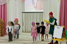 В предверие дня рождения Г.Тукая в детском саду прошел клубный час, посвященный творчеству татарского поэта.Особенностью клубного часа было то, что ребят в каждом клубе встречали персонажи тукаевских произведений и сам Г.Тукай. Русалка делала вместе с детьми гребень, Шурале озадачил детей проблемой защиты леса, Коза и Баран играли с детьми в подвижные игры, Г Тукай задавал вопросы о своей жизни и творчестве.В завершении - фото со сказочными героями на память.