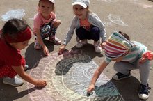Тематическая неделя "Что такое лето?" завершилась одноименной выставкой рисунков на асфальте, участие в которой приняли родители и дети.
