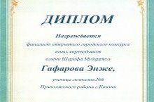 7 апреля 2016 года в Институте филологии и межрегиональной коммуникации КФУ состоялся заключительный тур открытого городского конкурса юного переводчиков им.Ш.Мударриса. Ученица 10 класса нашей гимназии Гафарова Энже была награждена Дипломом финалиста. Поздравляем!