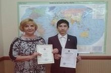 Поздравляем призера Всероссийской олимпиады школьников по географии Музеева Данияра и его учителя Архипову Татьяну Ивановну!