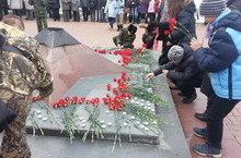 01.04.13. ученики 8а(м) класса, бойцы «Снежного десанта» гимназии, приняли участие в открытии Республиканской Вахты памяти в Парке Победы.