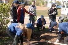 05.05.12. учащиеся 10а класса совместно с воспитанниками Детского реабилитационного центра (для детей-инвалидов) в честь 67-ой годовщины Победы в Великой Отечественной войне посадили деревья на центральной аллее школьного двора.