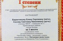24.11.23. ученица 3в класса Сомова Светлана вместе со своей мамой стала победительницей районного этапа республиканского конкурса "Читающая семья". Поздравляем!