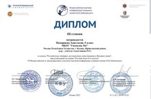 Поздравляем Поморцеву Анастасию, ученицу 5 г класса, с успешным выступлением на Всероссийской конференции учащихся имени Н.И. Лобачевского, а также с присуждением диплома II степени на Межрегиональной предметной Олимпиаде КФУ "Иностранный язык".