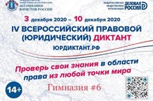 10 декабря 2020 года наши старшеклассники участвовали в онлайн-режиме во IV Всероссийском правовом (юридическом) диктанте.
