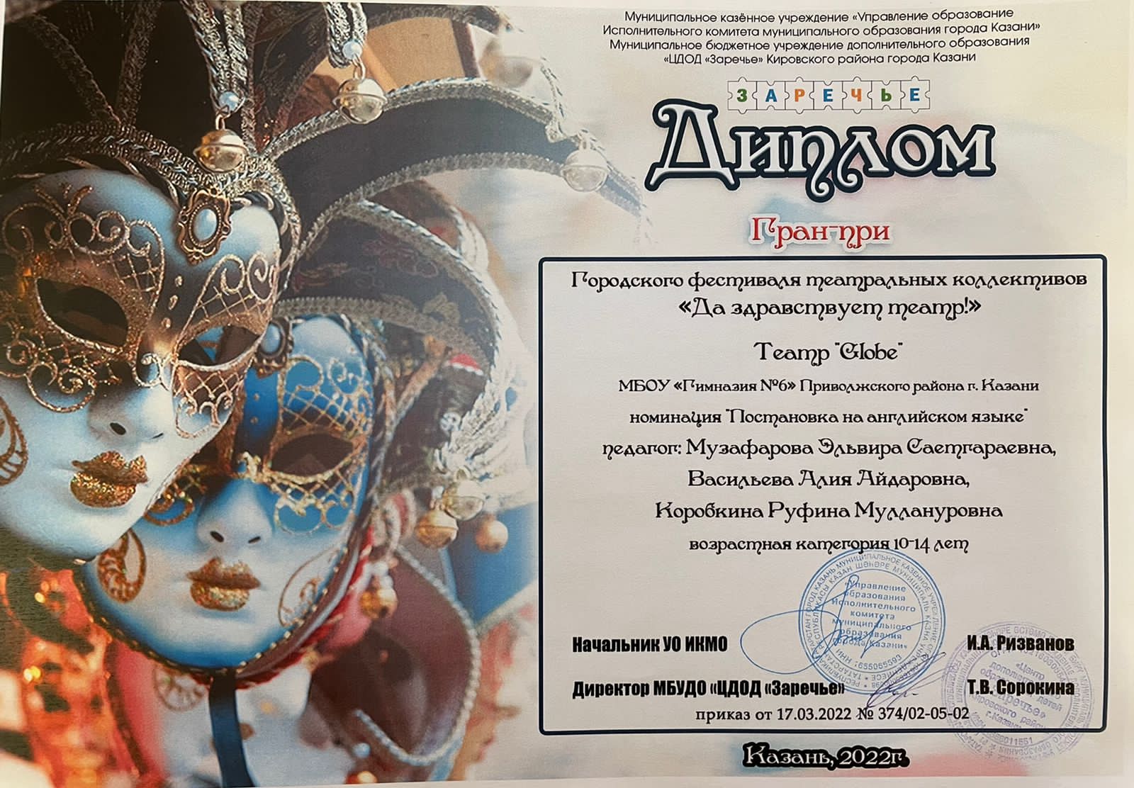 • Муниципальное бюджетное общеобразовательное учреждение «Гимназия №6» Приволжского района г. Казани/Казан шәһәре Идел буе районының «6 нчы Гимназия» муниципаль бюджет гомуми белем бирү учреждениесе
