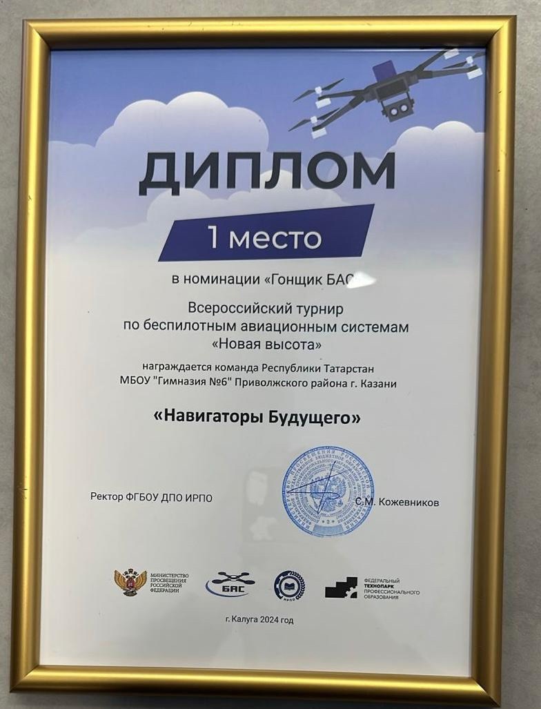 В Федеральном технопарке профессионального образования г.Калуга 5–6 декабря 2024 года состоялся Всероссийский турнир по беспилотным авиационным системам «Новая высота», в котором приняли участие школьники и студенты колледжей из 30 регионов страны. Мероприятие организовано в рамках федерального проекта «Кадры для беспилотных авиационных систем» национального проекта «Беспилотные авиационные системы». В составе команды от нашей гимназии в турнире приняли участие Нургалиев Булат, ученик 9Д класса, и Введенский Родион, ученик 10А класса инженерного лицея для одаренных детей им.А.Н. Туполева. Поздравляем ребят и их педагога - наставника, учителя информатики гимназии 6 Мухаметшину Гульфию Гайязевну с победой в турнире! Так держать!