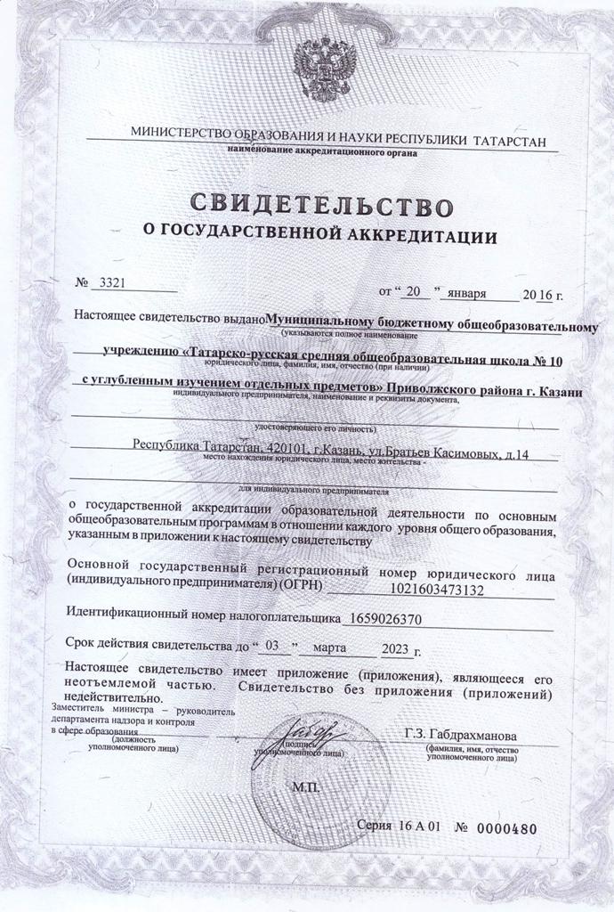 Муниципальное бюджетное общеобразовательное учреждение «Татарско-русская средняя общеобразовательная школа №10 с углубленным изучением отдельных предметов» Приволжского района г. Казани |
