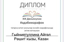 XIX #әдәбимарафон проектының финалистлары исемлегендә гимназиябезнең туган тел hәм әдәбияты укытучысы Гыйниятуллина Айгөл Рәшит кызы да бар. Татар әдәбияты, мәдәниятенә гашыйк укытучыбызны чын күңелдән тәбриклибез!