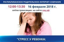 Сегодня состоялось Республиканское родительское онлайн-собрание под названием "Стресс у ребенка: как распознать и чем помочь?", посвященное эффективным методикам преодоления конфликтных и кризисных ситуаций в жизни детей и подростков. Онлайн-трансляция мероприятия велась на сайте киу.рф с 12.00 до 13.30. Вопросы принимались на электронную почту roditelirt@mail.ru.