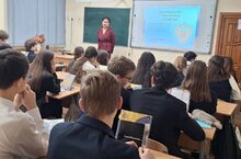 В гимназии продолжаются мероприятия - «Дни науки» учителей обществоведческого цикла. В 10 классах лекционное занятие на тему «Конституция - основной закон Российской Федерации» провела практикующий юрист, преподаватель ВГУЮ Казанский филиал Ямилева Карина Рамилевна.