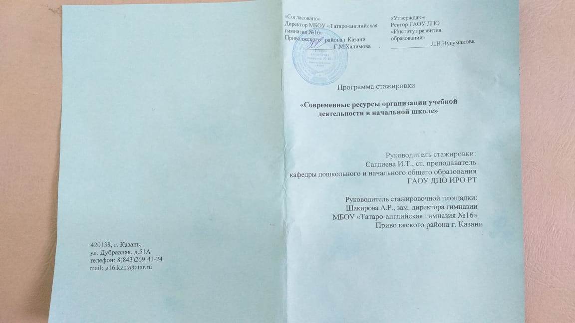 Стажировка по теме: «Современные ресурсы организации учебной деятельности в начальной школе»
