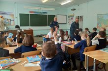 Перед учащимися школы выступили представители МЧС Бачурин С. и Ягофаров А. Они напомнили ребятам о правилах поведения на льду, обращении за помощью в экстренных случаях по единому телефону 112.