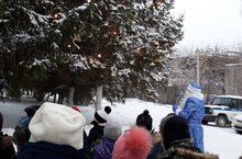 Елки пышный убор.Сегодня в микрорайоне поселка Кукушкино открылась новогодняя елка. Дед Мороз, Снегурочка и сказочные лесные жители веселили ребят у елки.