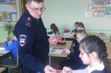 Перед учащимися 1-7 классов выступил инспектор ГИБДД Раскатов Александр Владимирович. Он провел беседу и вручил учащимся 1-3 классов световозвращающие брелки.
