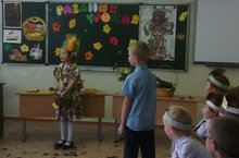 У ребят 1 класса (классный руководитель Давлетгараева Надежда Геннадьевна) сегодня праздник. Сама "Золотая осень" пришла в гости к ребятам с большой корзиной овощей и фруктов, приготовила пословицы, поговорки. А в ответ послушала стихи и песни, приготовленные ребятами. Зрителями на празднике стали второклассники.
