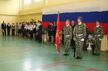 Знаменная группа школы (педагог-организатор ОБЖ Абдулхалимов Р.Х.) приняла участие в районном конкурсе знаменных групп.