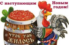 Поздравляем всех с Новым годом, с годом Петуха. Пусть символ этого года принесет достаток и благополучие в дом, веселье и радость, настойчивость характера и бойкость духа, крепкое здоровье и верную удачу. Желаем всем в новом году осуществить всё задуманное и получить всё желаемое!