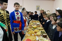 Сегодня в школе прошла удивительная выставка, на которой были представлены блюда разных национальностей.Но ведь и школа наша многонациональная. Спасибо мамам, бабушкам и даже папам, руками которых были приготовлены всякие "вкусности".