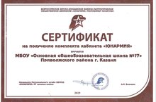 Отряд Юнармии стал победителем в номинации "Лучшая работа юнармейского отряда" республиканского смотра-конкурса-2018 и получил сертификат на комплект кабинета "Юнармия".