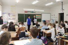 Перед учащимися начальных классов выступили инспектор ГИББД капитан полиции Гостев М.С. и ведущий специалист отдела профилактики ТУ в г.Казани ГБУ "БДД" Хайруллина С.С. Они рассказали ребятам о правилах дорожного движения, необходимости их соблюдать, раздали проспекты и газеты "Добрая дорога детства".