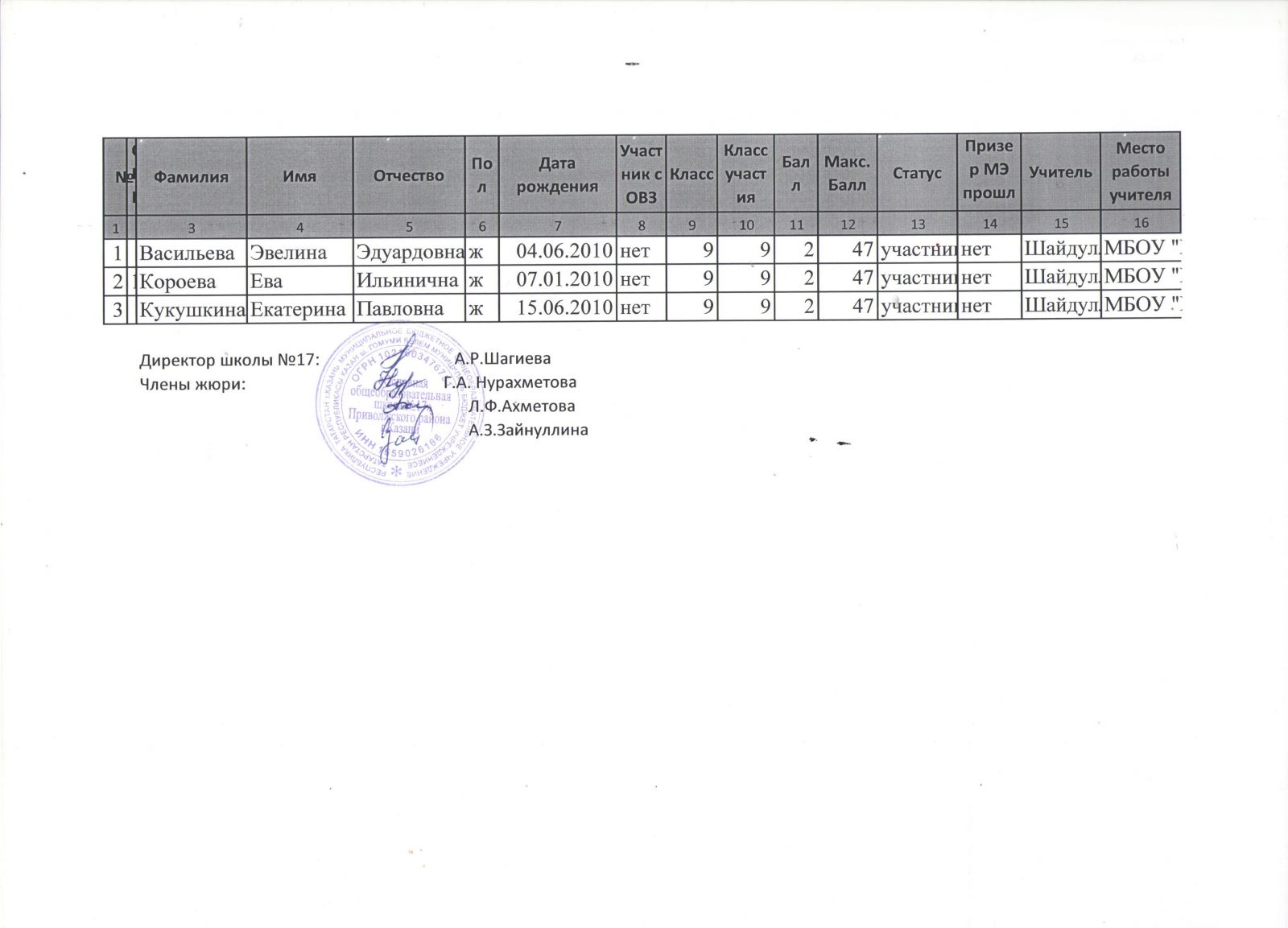Муниципальное бюджетное общеобразовательное учреждение «Основная общеобразовательная школа №17» Приволжского района г. Казани