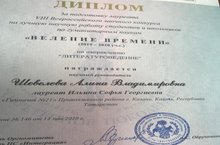Поздравляем Ильину Софью, ученицу 11 класса, лауреата VIII Всероссийского заочного конкурса на лучшую научную работу студентов и школьников по гуманитарным наукам "Веление времени" по направлению "Литературоведение". Выражаем благодарность Шевелевой Алине Владимировне за подготовку лауреата!