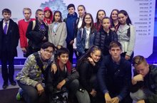 21 сентября учащиеся 8б класса посетили мультимедийную выставку "XX век. От великих потрясений к Великой Победе" в историческом парке "Россия - моя история" на ОАО "Казанская ярмарка".