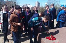 4 мая учащиеся 5а класса (классный руководитель Долгая Л.И.) приняли участие в торжественном митинге с возложением цветов, посвященном 9 мая, в Сквере Славы.
