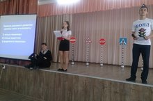 27 апреля для учащихся начальной школы активисты 8б класса провели мероприятие по безопасности дорожного движения. Они показали агитбригаду, предложили отгадать загадки на знание правил дорожного движения, поиграли с младшими учениками в игры на внимательность и показали им обучающий мультфильм "Смешарики: Азбука безопасности".