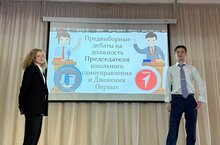 Сегодня в гимназии прошли предвыборные дебаты. На пост Председателя школьного ученического самоуправления и Движения Первых выдвинули свои кандидатуры два активиста: Тураева Анна и Афзалов Эльдар. Кому из них сегодня удалось завоевать доверие и покорить сердца избирателей-активистов - покажут результаты голосования.