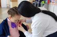 5 мая в гимназии прошла акция "Георгиевская лента". Утром при входе в гимназию всем раздавали двухцветные оранжево-черные ленты - символ и главный атрибут Дня Победы в России.