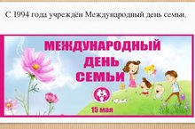 Ежегодно в мире 15 мая отмечают день семей. Это один из самых светлых праздников, который имеет отношение к каждому человеку. Семья - очень важная ячейка общества, в которой происходит воспитание ребенка.