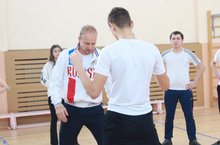 Сегодня гостем школьного проекта "Зарядка со звездой" стал многократный призер чемпионатов мира и Европы по карате сетокан, мастер спорта Маратф Шарафеев. Участниками зарядки стали почти 80 учащихся. Ребята узнали, как правильно разогреть и растянуть мышцы, как развить в себе чувство противника и даже выучили один удар.