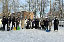 Ученикам и родителям начальной школы под руководством Тамары Николаевны и Рамзии Ринатовны! После последней метели (5 января) у школы выросли настоящие снежные сугробы. Вы взялись за сложную задачу: снег был мокрым, тяжелым, а слои — большими. И вы справились блестяще, расчистив дорожки и хоккейную коробку