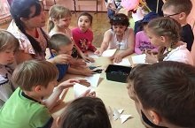 Сегодня ребята из пришкольного лагеря побывали на мастер-классе по оригами в ЦДТ «Олимп». По окончании мастер-класса ребята разделились на команды для соревнования на скорость изготовления оригами. Все ребята получили сладкие подарки