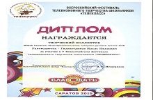 Наша школа приняла участие в 5 Всероссийском Фестивале телевизионного творчества школьников "Телекласс". В номинации "Профессиональный выбор"(познавательные программы) команда нашей школы под руководством Гилязутдинова Ильяса Ниязовича стала победителем по итогам голосования жюри. От всей души поздравляем команду нашей школы за столь высокое достижение и желаем им дальнейших побед.
