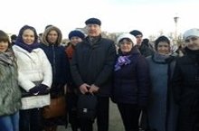 Каких только флагов не было сегодня у Центрального стадиона Казани, где построили импровизированную сцену для митингующий и артистов! Начиная триколором «единороссов» и красным знаменем и заканчивая разноцветными полотнами различных религиозных общин. В целях безопасности полиция пропускала за ограждения потоки народа, текущие из метро, только через рамки металлоискателей, а в целях профилактики переохлаждения людям наливали горячий чай из полевых кухонь. В ожидании начала мероприятия люди согревались и, пританцовывая под музыку из репертуара «Любэ».
