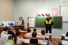 В ходе встречи инспектор ГИБДД рассказал учащимся о том, как правильно вести себя на дорогах, пешеходных переходах и в общественном транспорте. -