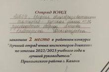Наша команда ЮИД была награждена дипломом за активное участие в республиканском конкурсе ЮИД " Безопасное колесо-2023".