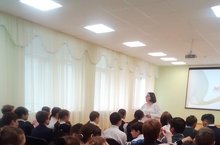 4 мая,в преддверии Дня Победы, в целях воспитания патриотизма, воспитания чувства гордости за свою Родину, на примере героического прошлого ветеранов и участников Великой Отечественной войны, а также тружеников тыла, воспитания чувства ответственности и долга перед Родиной во всех классах прошли уроки истории. В актовом зале учитель истории Зиганшина Э.И. учащимся 7-ых классов рассказала про крупное сражение ВОВ-битва за Москву.Был показан художественный фильм режиссера Вадима Шмелева " Подольские курсанты".