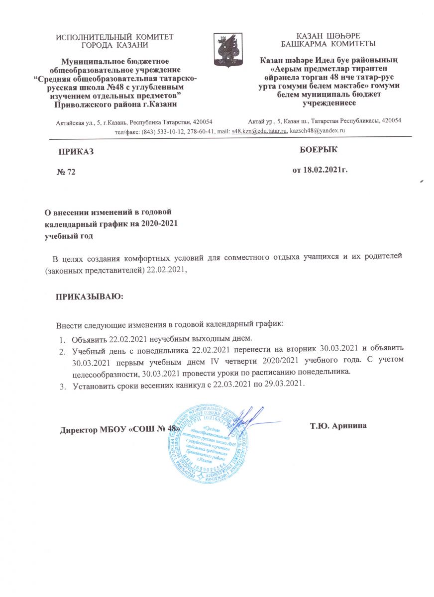МБОУ «Средняя общеобразовательная татарско-русская школа №48 с углубленным изучением отдельных предметов» Приволжского района г. Казани - новости
