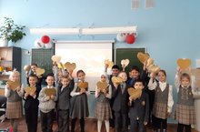 Дети подготовили стихи и песни\. посвящённые мамам. В конце урока были сделаны поделки в форме золотого сердца с тёплыми словами для мам.